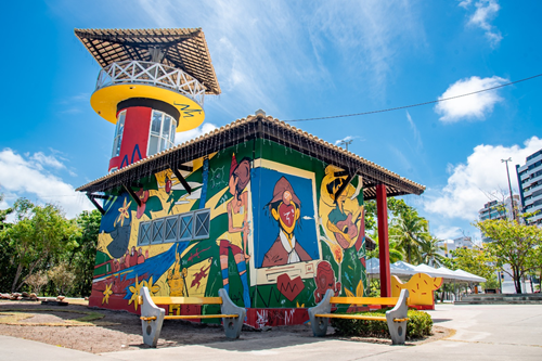 A arte urbana ganhou novos contornos em Aracaju com a entrega do mural que transforma o Mirante da 13 de Julho em uma obra que fortalece a identidade da capital. A entrega, que valoriza ainda mais a reabertura do espaço para o público, é assinada pelo artista Thiago Neumann, em uma realização da Prefeitura de Aracaju, por meio da Secretaria Municipal de Turismo (Setur).